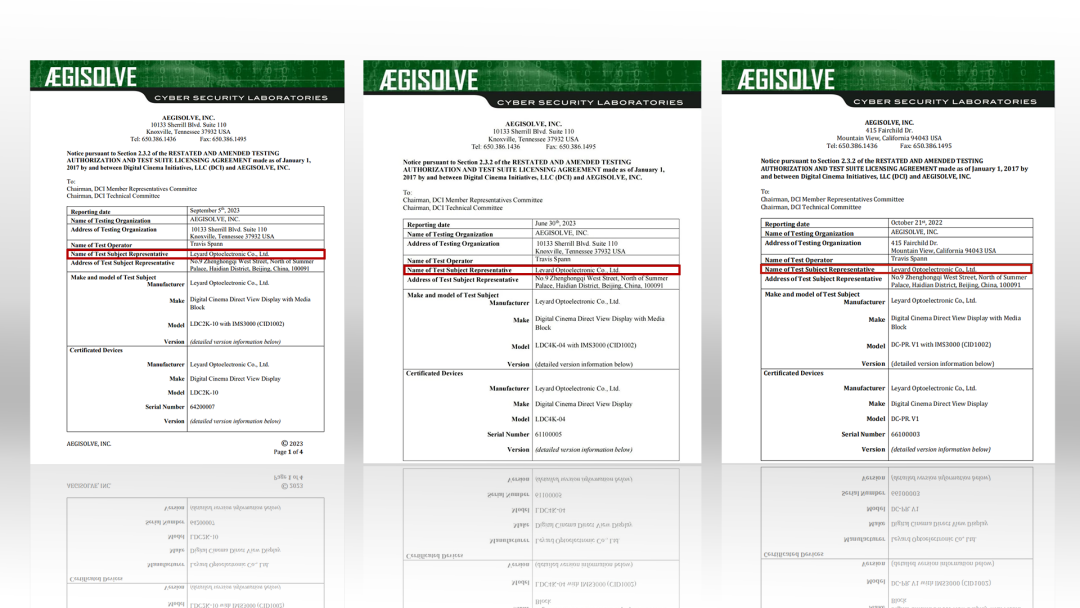 自2019年11月,利亚德与LG电子联合开发的多款LG LED Cinema显示屏陆续通过DCI认证